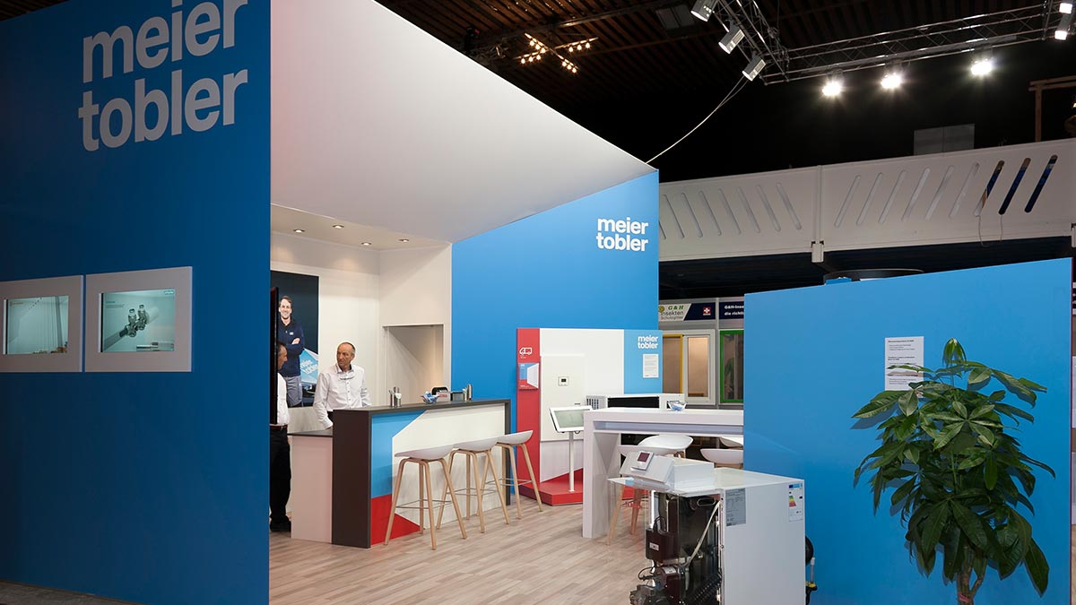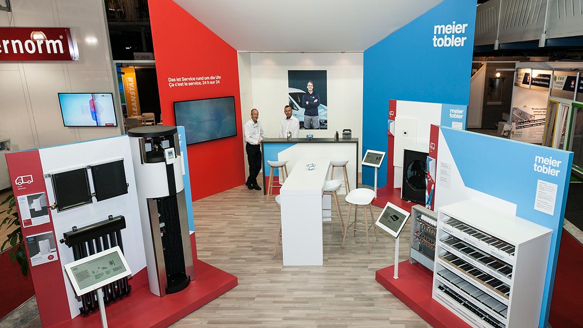 Die Meier Tobler AG handelt teamorientiert und setzt sich engagiert für zukunftsweisende Haustechniklösungen ein, die ihre Kunden und die Branche weiterbringen. Seit dem Zusammenschluss der Walter Meier AG und der Tobler AG präsentiert sich die Meier Tobler AG mit ihrem neuen Gesicht an diversen Messen mit einem Individualstand. Dieser widerspiegelt die Modernität und Flexibilität beider Unternehmen und fällt den Besuchern durch das farblich abgestimmte Standkonzept ins Auge. Speziell konstruierte Warenträger locken mit ihrem Sortiment die Interessenten an den Stand.