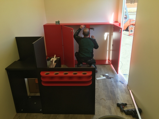 Nach einigen schweisstreibenden und spannenden Stunden vollendeten unsere Schreiner das Werk!