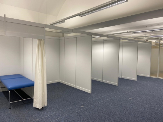 Nach einigen Besprechungen und Datenaufnahmen, durfte die Bexpo Productions AG mit dem Bau der Infrastruktur starten. Innerhalb kurzer Zeit realisierte das Bexpo-Team das Impfzentrum. In der Zwischenzeit sind die letzten Schritte in vollem Gange, so dass am 6. April das Zentrum eröffnet werden kann.