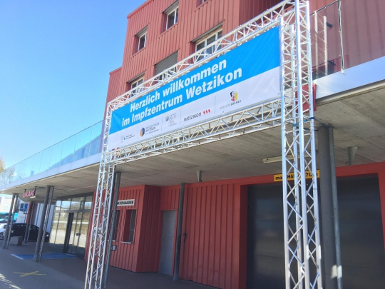 Zur Bewältigung der Schweizer COVID-19 Impfstrategie entstehen zahlreiche Impfzentren. Beim Eilprojekt «Impfzentrum Wetzikon» durften wir mit dem Bau der Infrastruktur und dem Druck einiger Blachen mitwirken. Es ist professionelle Präzision und effiziente Geschwindigkeit gefragt. Noch läuft der Aufbau auf Hochtouren. Ab dem 29.3. können sich Impfwillige Personen +76/+65 registrieren, ab dem 7. April wird geimpft. Alle Infos gibt es unter https://impfenwetzikon.ch/
