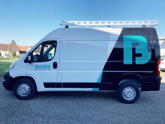 Dank einer neuen, modernen Teilfolierung sind die Montagefahrzeuge von Blaser Metallbau jetzt noch auffälliger! Unser Werbetechnik- Team hat geschickt Sicken, Wölbungen und Zierleisten mit Hochleistungsfolien veredelt. Das Ergebnis spricht für sich! Das Fahrzeug beeindruckt nicht nur durch die gesteigerte Sichtbarkeit, sondern verleiht den Fahrzeugen auch eine moderne und professionelle Ausstrahlung. Nutzen auch Sie ihre Firmenfahrzeuge als fahrende Werbefläche.