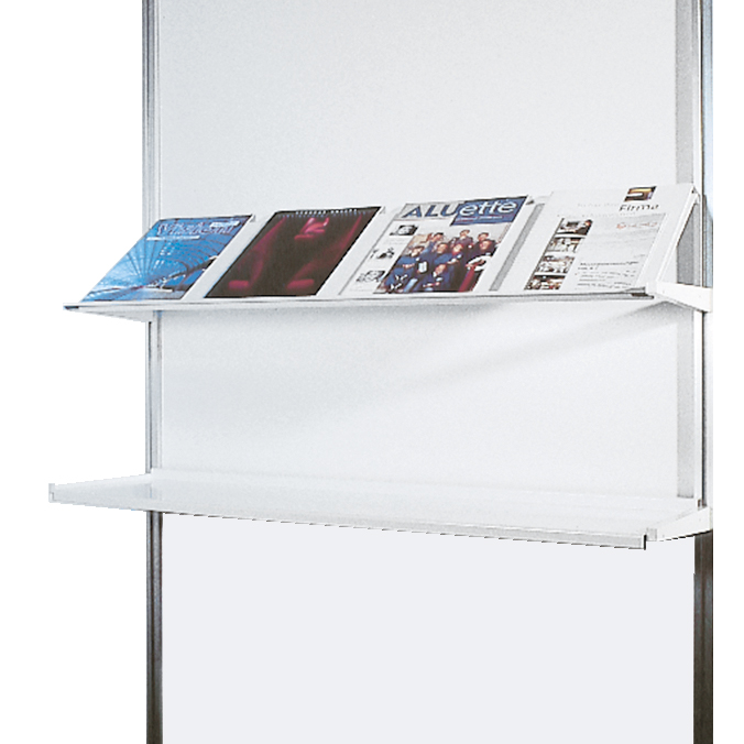 Nr. 6049 / Systemtablar weiss, 2 Konsolen und 1 Tablar, Tablar kann schräg oder gerade genutzt werden.