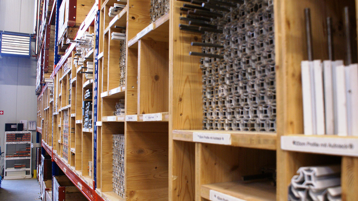 We store our main range at our over 10,000m3 site, not including our external storage areas. We arrange, repair and equip our material with our trained personnel in logistics, joinery and metalworking. As well as tradesmen, Bexpo Productions AG also have CAD designers, planners, graphic designers, fitters, buyers and polydesigners at our disposal.